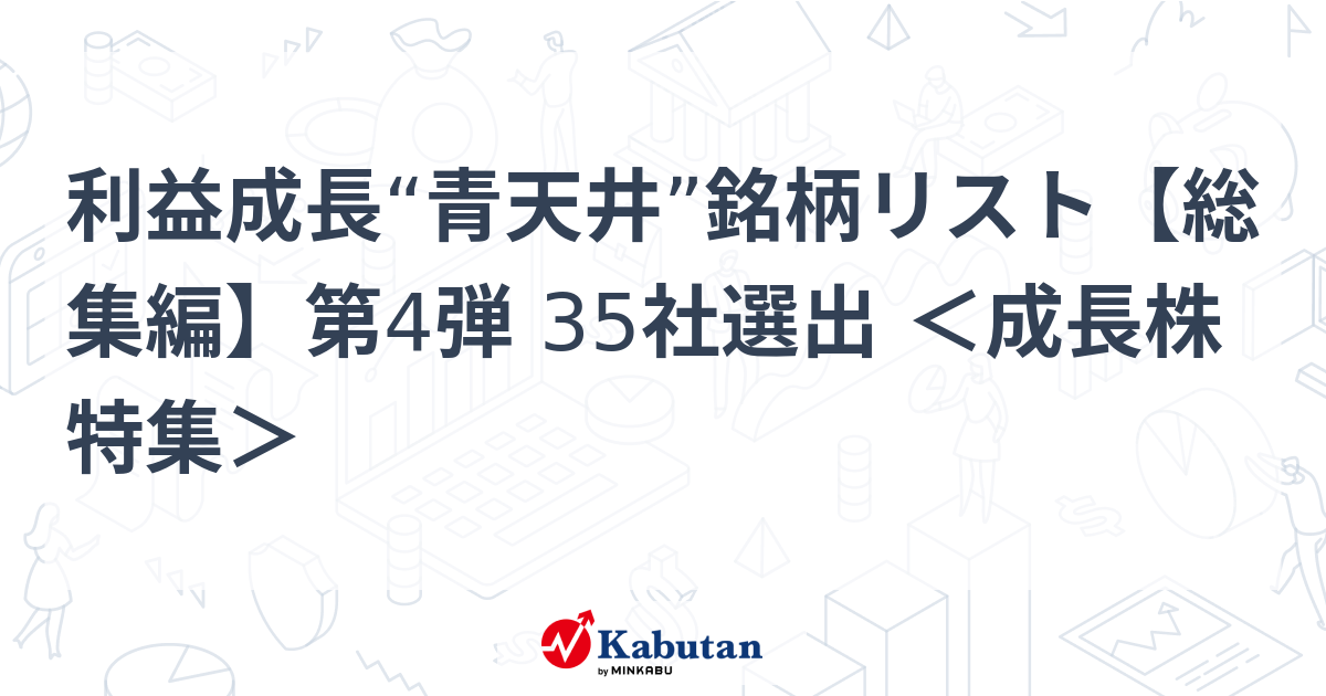 利益成長“青天井”銘柄リスト【総集編】第4弾 35社選出 <成長株特集> | 株探ニュース